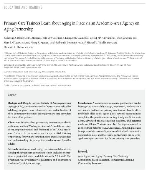 New Publication: Primary Care Trainees Learn about Aging in Place via an Academic-Area Agency on Aging Partnership