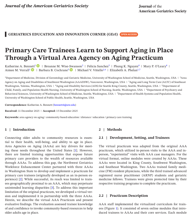 New Publication: Primary Care Trainees Learn to Support Aging in Place Through a Virtual Area Agency on Aging Practicum